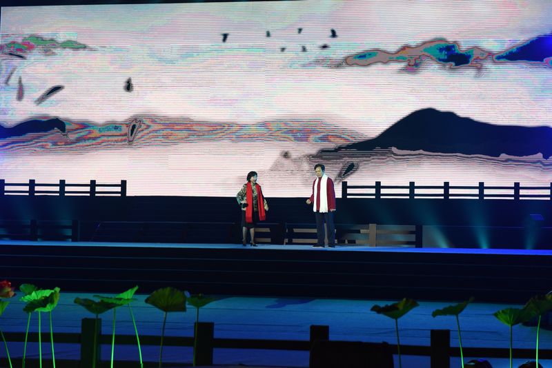 为了更好的配合不同形式节目的舞台表现力、展现出国学经典的深远意境,本届比赛除了搭设有LED大型显示屏的主舞台,配合先进的3D造影技术和绚烂多彩的舞台灯光,将现场勾勒出亭台楼阁、远山近水,宛如一幅山水画。主屏幕随着表演内容,时而皓月当空,时而青莲出水。在身着古装的演员们或激扬顿挫的朗诵,或悠扬婉转的吟咏中,观众已然穿越漫漫时空,沉浸在国学经典的深远意境中。